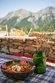 Au chalet, les gardiens cuisinent avec des produits frais et des producteurs locaux, bio quand cela est possible. Ici, tout est fait maison. La cuisine est généreuse et gourmande. Un lieu idéal pour découvrir le très charmant hameau de Maljasset, pratiquer diverses activités à la journée, et bien sûr se détendre dans un paysage idyllique.